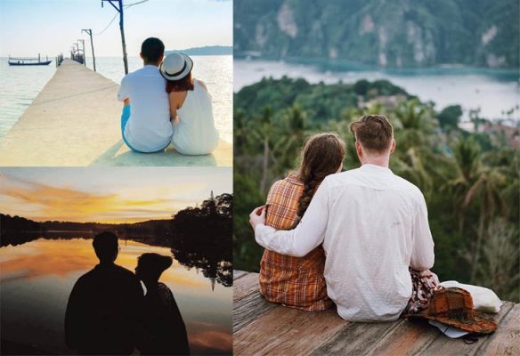 Đây cũng là một cách chụp ảnh khá ấn tượng mà bạn không nên bỏ qua nhé. Bạn chỉ cần lựa một góc chụp đẹp, sau đó cả 2 đứng quay lưng về phía camera và tạo dáng thật tự nhiên như cùng nhìn về phía trước, nhìn nhau cười. Nếu muốn bức hình có “cảm xúc” hơn bạn nam có thể thơm lên tóc bạn nữ là có ngay một bức ảnh tình yêu nhẹ nhàng, bình yên. Lưu ý nhỏ là bạn nam cần chú ý đến vị trí của tay, nó cần phải tự nhiên như hàng ngày bạn vẫn ôm bạn nữ. Góc máy cũng cần đủ xa để có thể bao quát được khung cảnh mà 2 bạn đang nhìn, tránh tạo ra một bức ảnh trống rỗng.