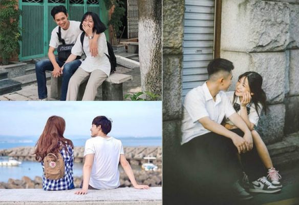 Góc máy lý tưởng nhất dành cho tư thế tạo dáng ngồi chính là chụp trực diện hoặc từ trên xuống. Để tạo ra sự tự nhiên như cuộc sống hàng ngày, bạn nam có thể ngồi chống chân hoặc vắt chéo chân, một tay gác lên đầu gối và tay còn lại khoác vai hoặc để lên chân bạn nữ. Cả hai cùng trao cho đối phương ánh mắt yêu thương hoặc đơn giản chỉ là một nụ cười hạnh phúc cũng đủ tạo ra một bức ảnh ngọt ngào.